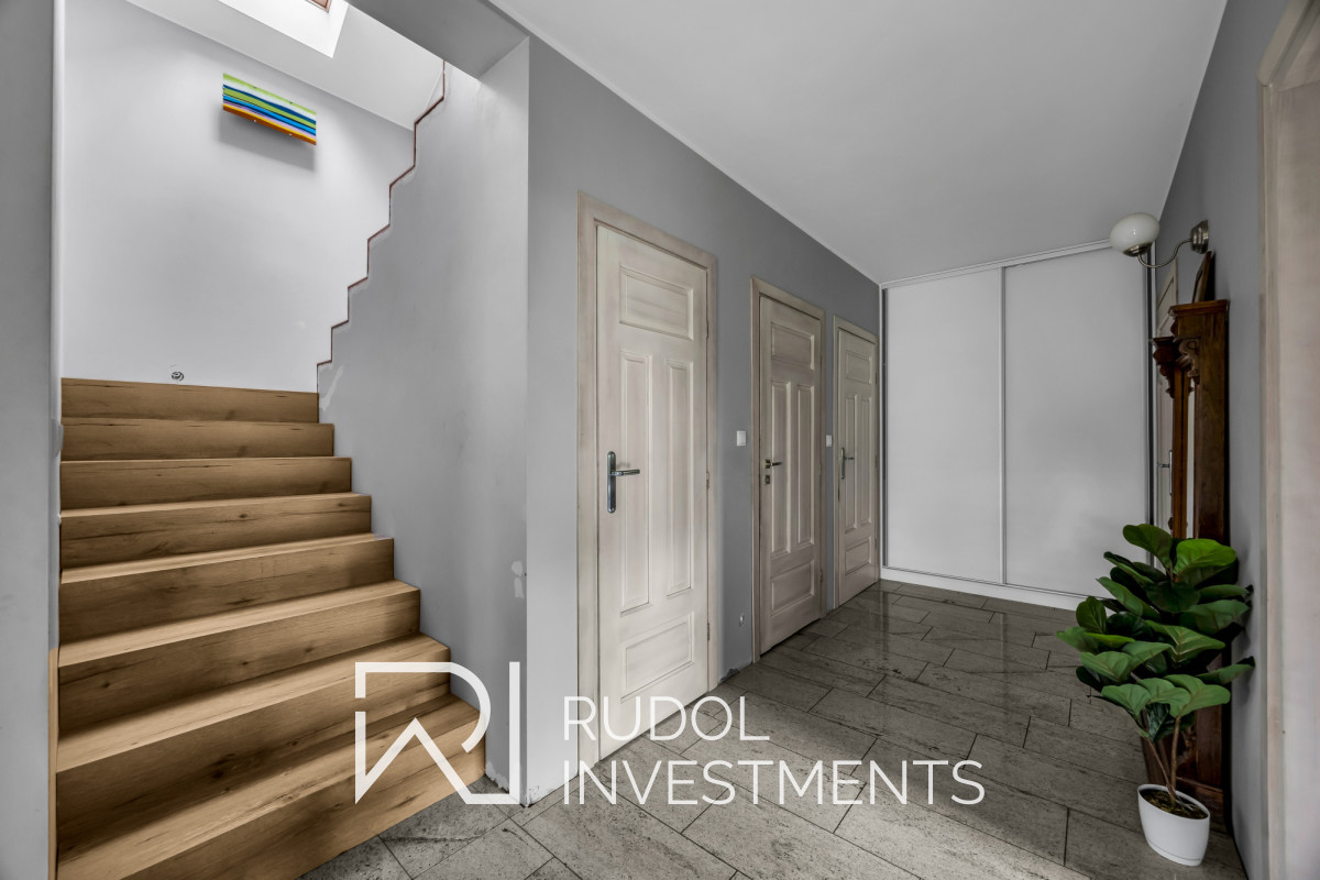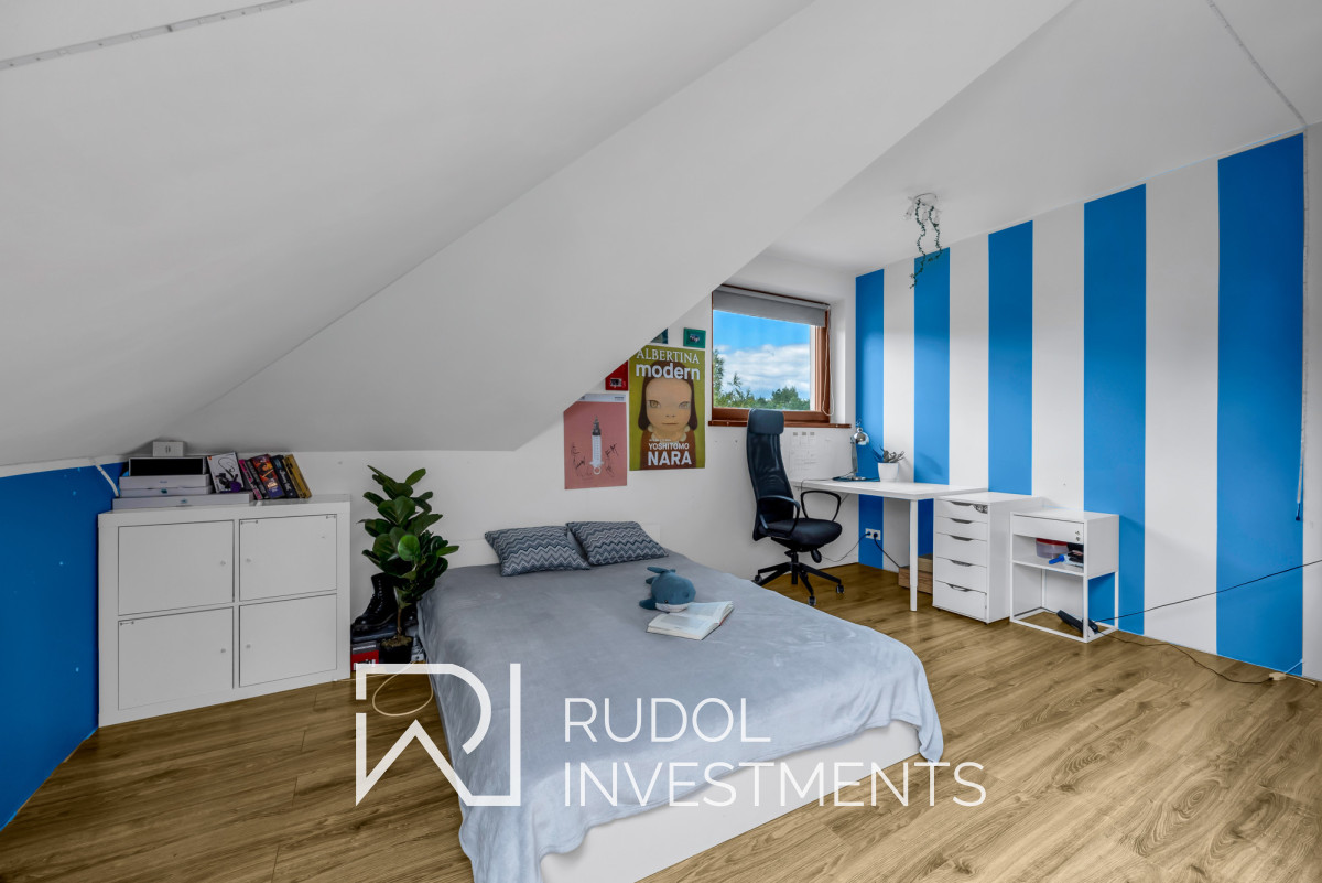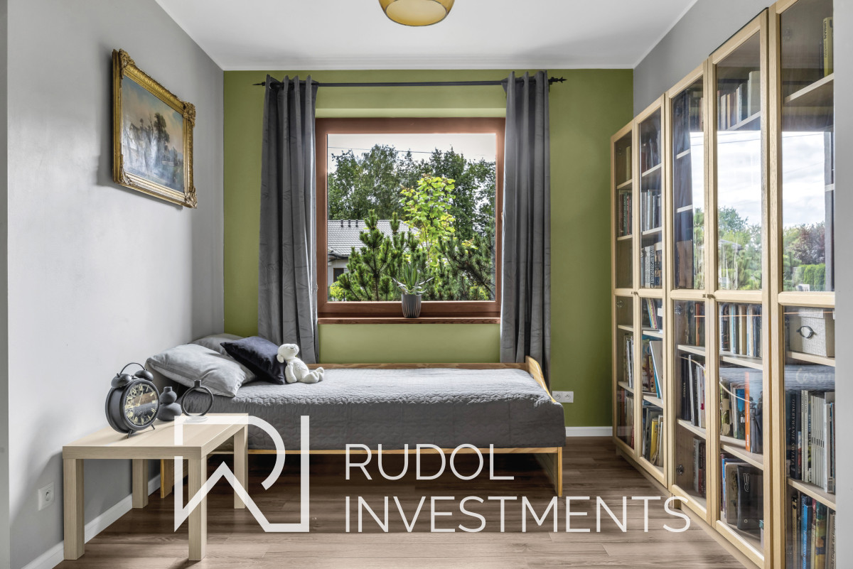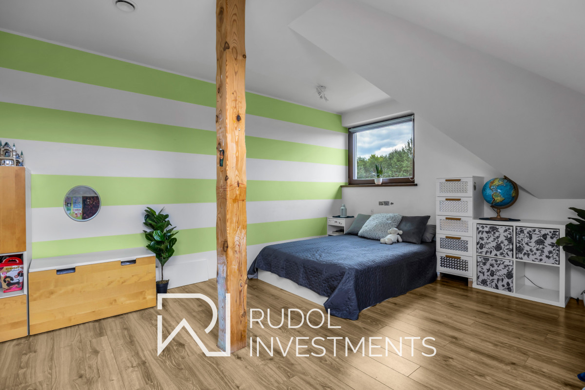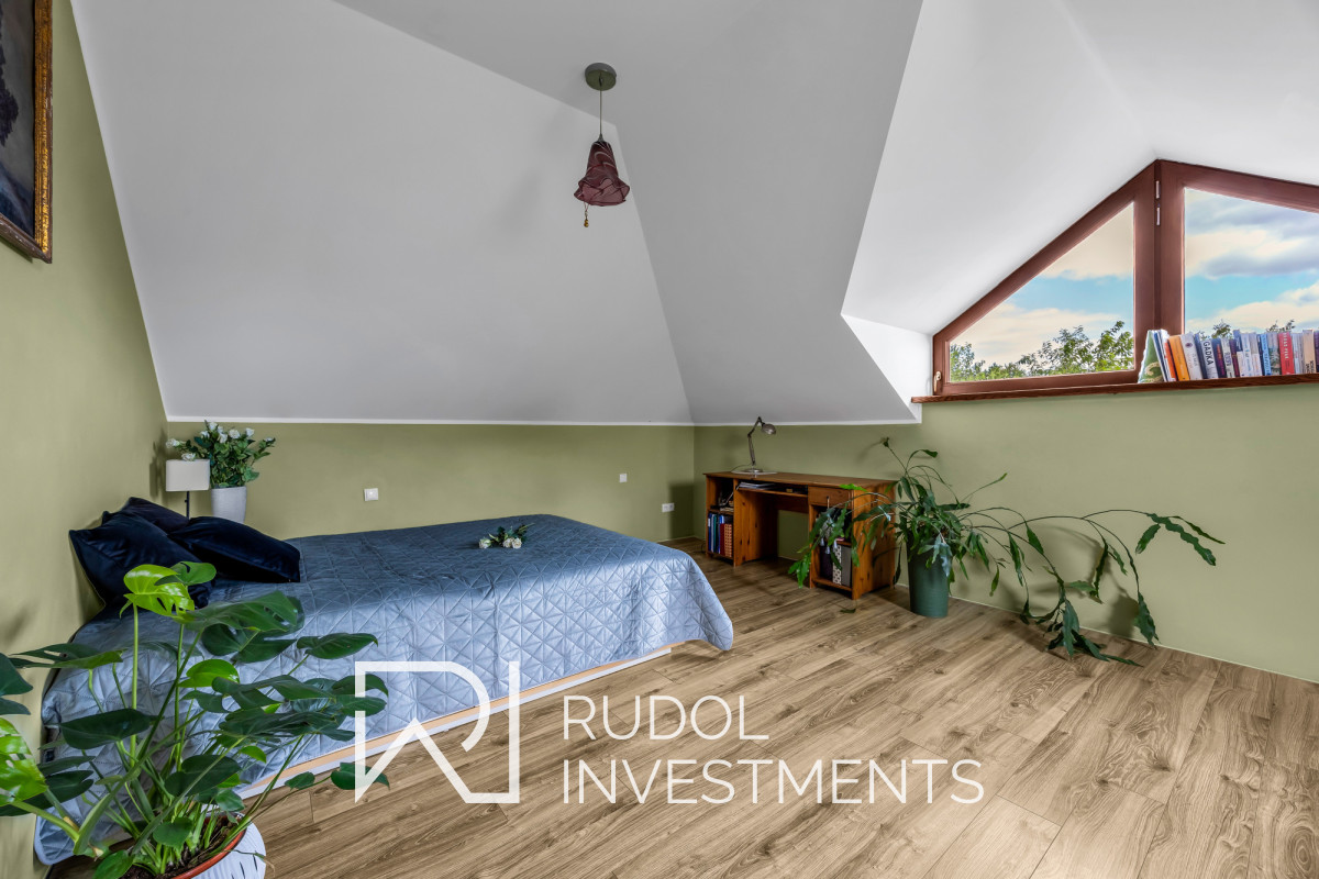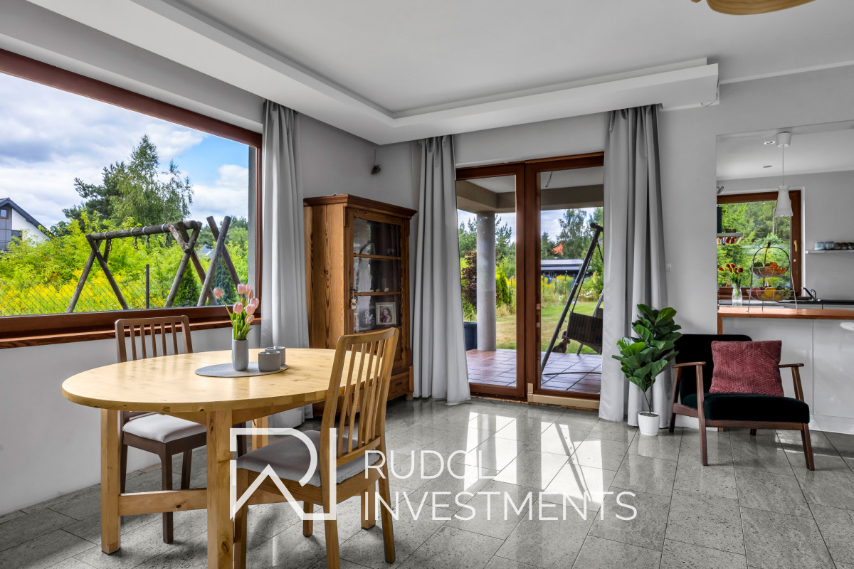 Ogród z nawodnieniem daje możliwości rekreacji we własnym zakresie (miejsce na basen, ognisko), a duża odległość od sąsiednich domów gwarantuje komfort z zachowaniem prywatności.