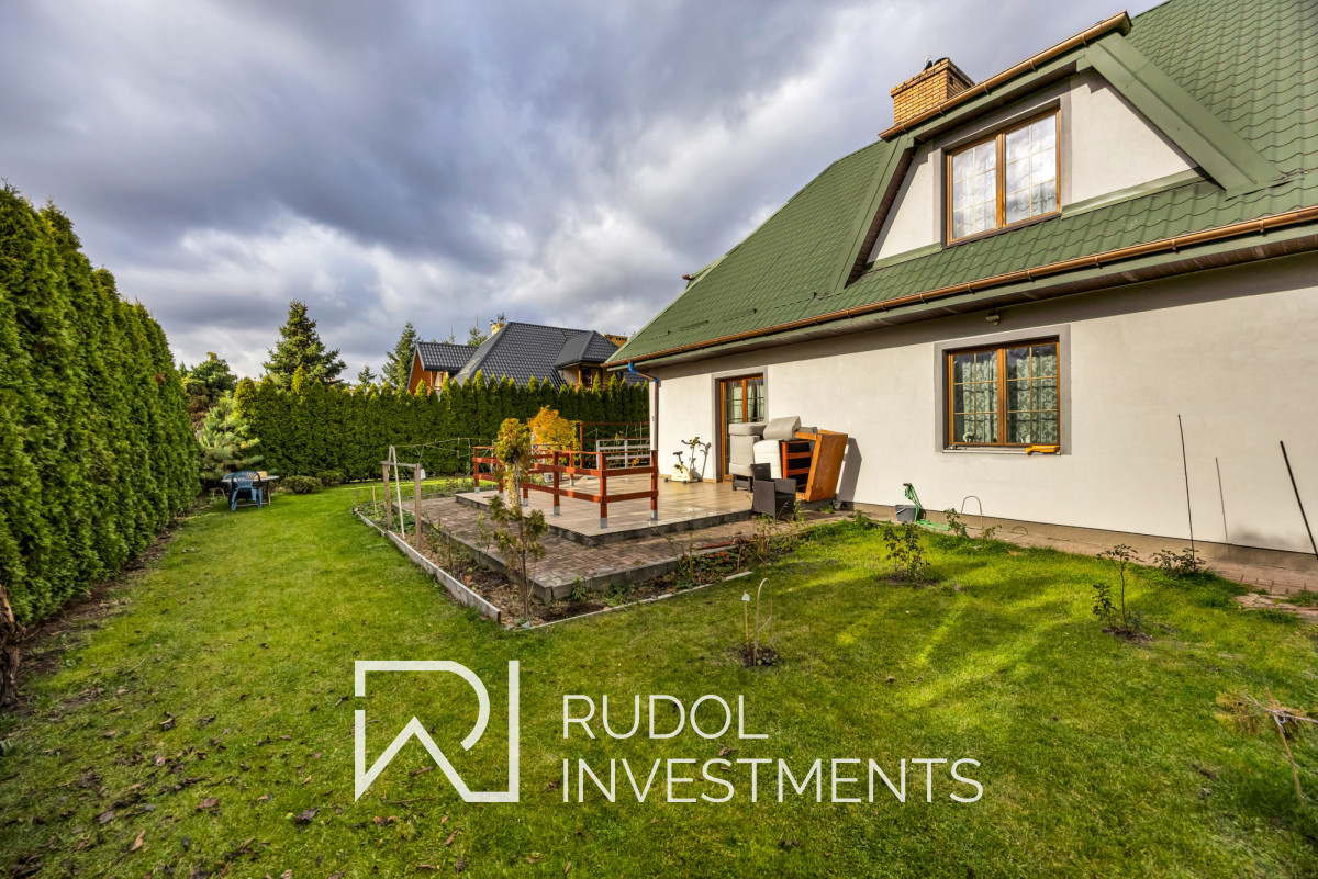 Dom posiada cztery kondygnacje począwszy od piwnicy do poddasza nieużytkowego, został wykonany w tradycyjnej technologii murowanej, z cegły. Posesja jest ogrodzona, a podjazd wyłożony został kostką. Na działce 980 m2 wokół domu znajduje się ogród urządzony przez właścicielkę z uprawą róż. W bryle budynku znajduję się garaż i przed nim dodatkowe miejsca postojowe co najmniej na dwa samochody.