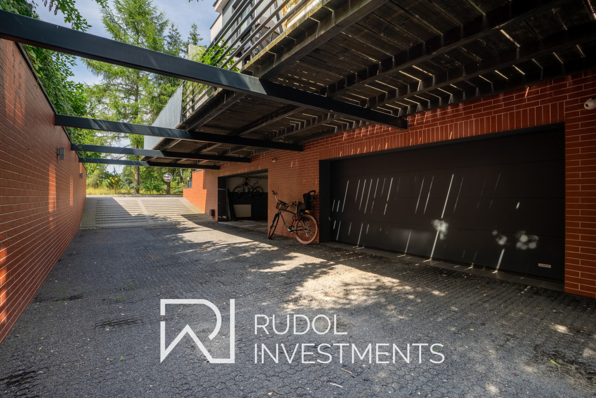Garaż znajduje się na poziomie -1, ale jest w pełni zintegrowany z domem - zaledwie kilka schodków prowadzi z niego bezpośrednio do przedpokoju, więc wchodzisz do środka suchą stopą, nawet w deszczu czy zimą. Jest to garaż dwustanowiskowy - spokojnie mieszczą się dwa samochody, a dodatkowo pozostaje jeszcze miejsce na rowery, wózki, narzędzia czy inne rzeczy, które zwykle zalegają w piwnicach czy komórkach.