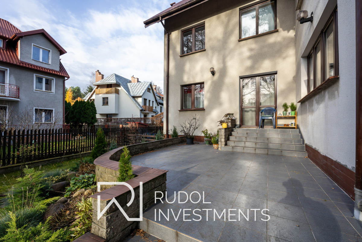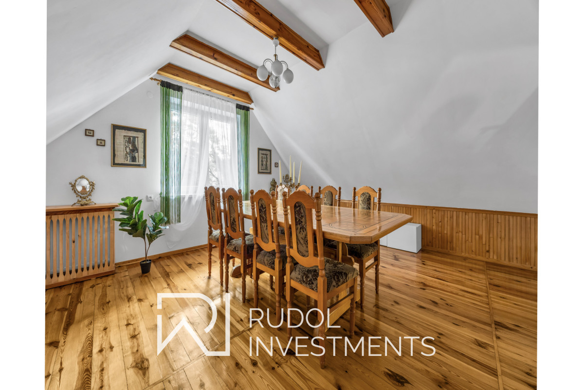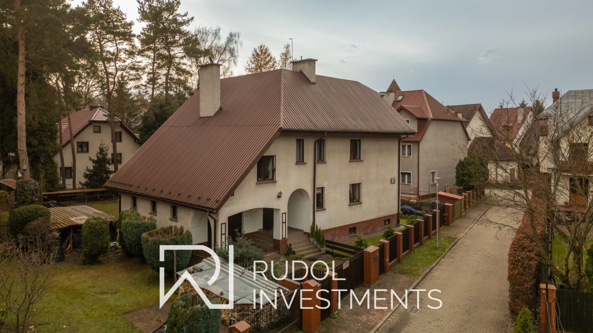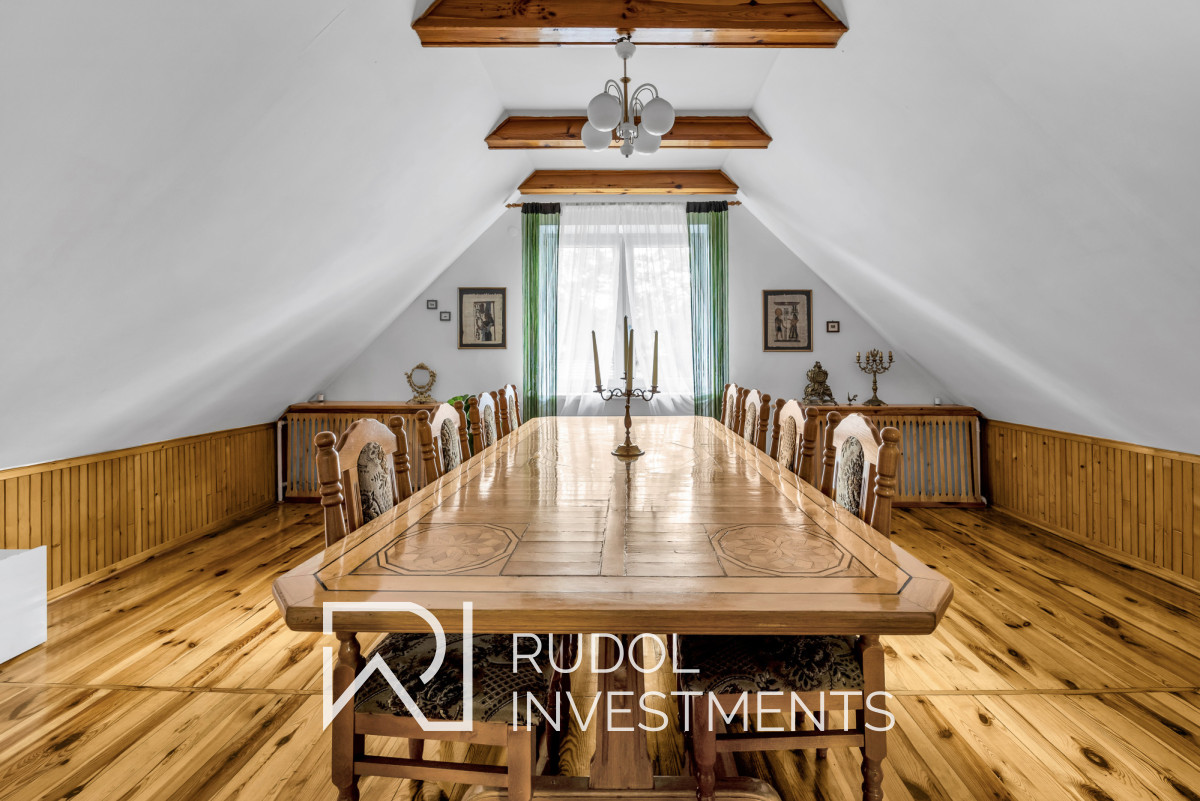 Dom stoi na dużej, ustawnej działce, posiada piwnicę oraz dwie pełne kondygnacje i poddasze.