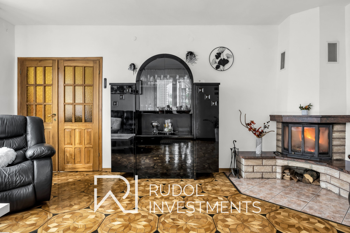 Wnętrza domu przyciągają uwagę oryginalnymi podłogami z parkietu, ułożonego w niepowtarzalne mozaiki. Dom jest w pełni uzbrojony w media. Ogrzewanie gazowe - wydajne i wygodne, wspomagane dodatkowo kominkiem, który szybko rozprowadza ciepło po całym domu.