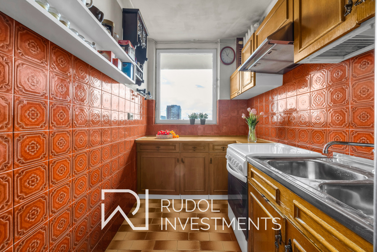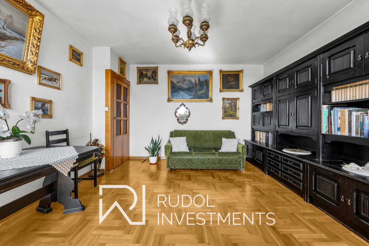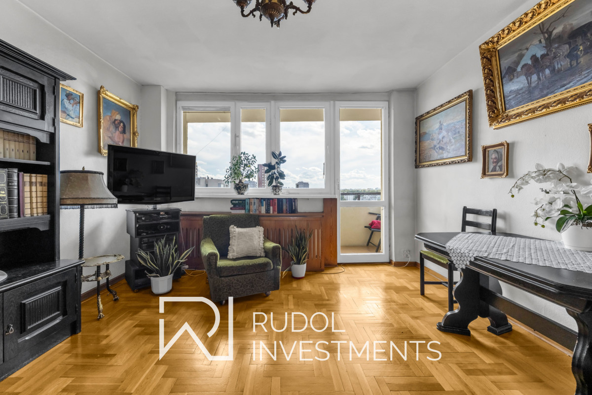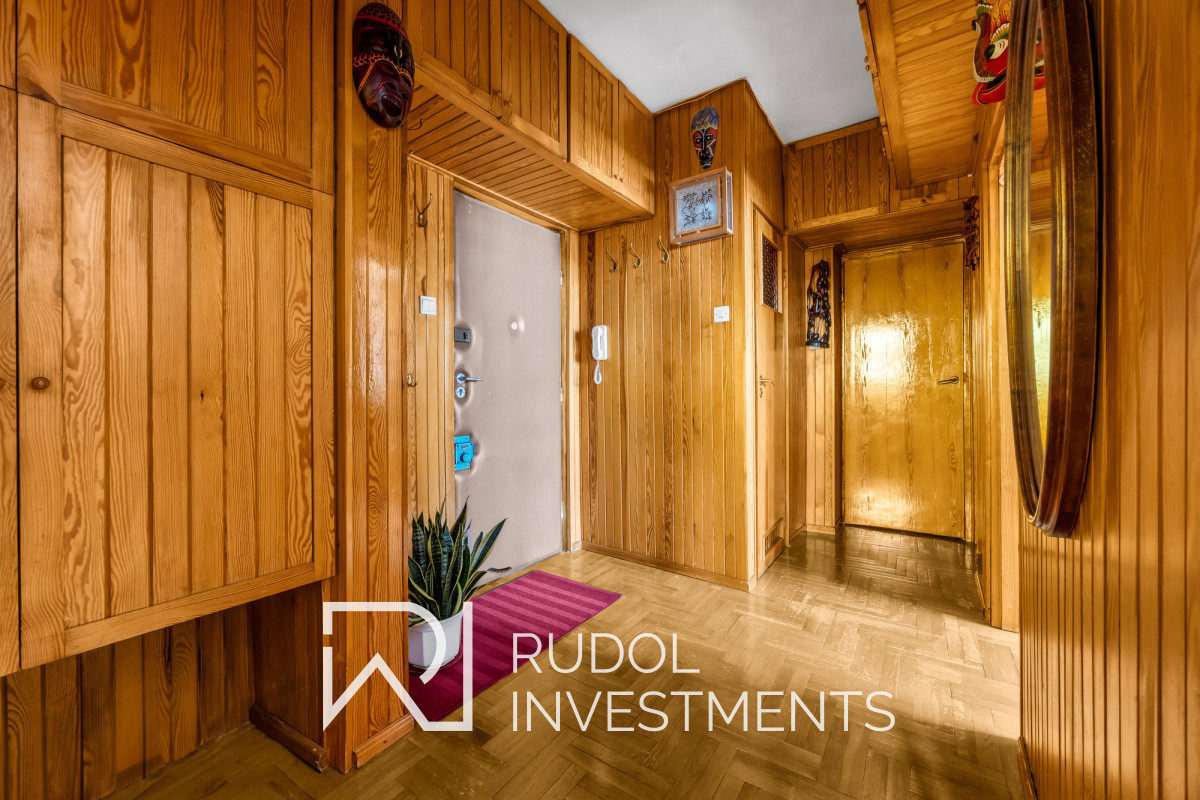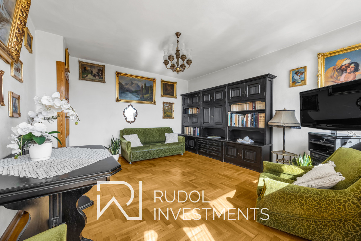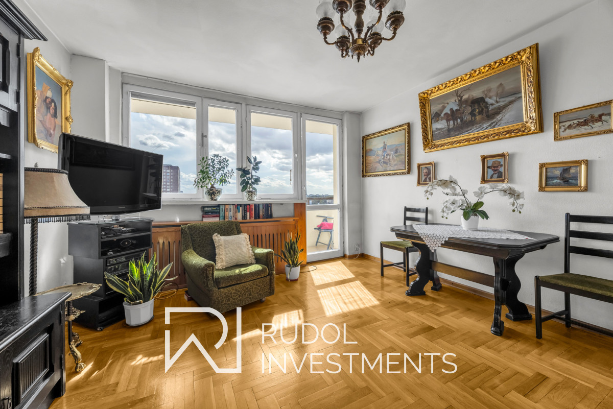 To mieszkanie ma ogromny potencjał aranżacyjny. Całość wymaga remontu, co stwarza wyjątkową okazję do stworzenia wnętrza według własnej wizji, przy jednoczesnym zachowaniu klimatu i charakteru PRL-owskiej architektury. Centralnym punktem jest jasny salon z wyjściem na długi balkon, z którego roztacza się piękny widok. Obok znajduje się kuchnia - obecnie oddzielna, ale łatwa do połączenia z salonem, co pozwoli stworzyć dużą, otwartą przestrzeń. Dwa dodatkowe pokoje świetnie sprawdzą się jako sypialnie, gabinet lub pokój dziecięcy. Do dyspozycji jest także łazienka, osobne WC oraz przestronny hol, który można wygodnie zabudować. Na podłogach znajduje się klasyczny parkiet, który po renowacji odzyska swój blask i charakter.
